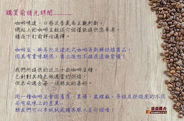 ◆口感濃厚,香氣迷人有甘甜的感覺,微酸。其香氣是屬花香及莓果香的味道,略帶檸檬及柑橘的酸香味。中度烘焙保留柑橘酸,中深烘焙則有較強…
