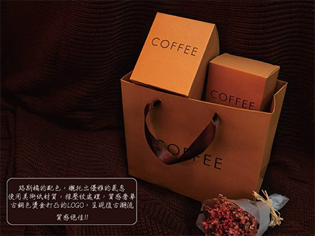 ◆美術紙質感燙金禮盒,搭配十款咖啡掛耳包及同系列手提紙袋,精緻大方 !