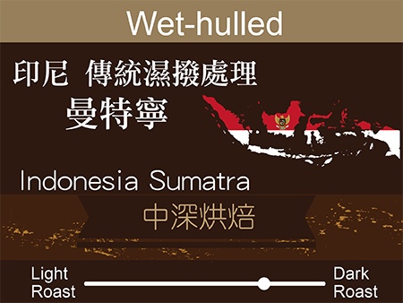 ◆ 曼特寧產於印尼的蘇門答臘島,是各種媒體上常見而耳熟能詳的咖啡名子。曼特寧是蘇門答臘島中部靠近巴東(Padang)高原的一個區域,就在島上西岸綿延的山脈上。曼特寧生豆質地較軟,偏褐綠色,視覺上看起來並不是光滑乾淨的類型。一般而言曼特寧屬口味較強的一型,濃香而苦甘,其咖啡的特色是香氣濃而重,低酸,但苦味較重,略帶一點中藥味及土味,有相當的稠度,口感醇而滑順,除適合單品飲用外,也常用於調合咖啡,提高咖啡的甘香味。