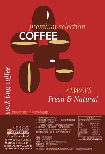 $250 /每袋(內含15小包浸泡式咖啡包)